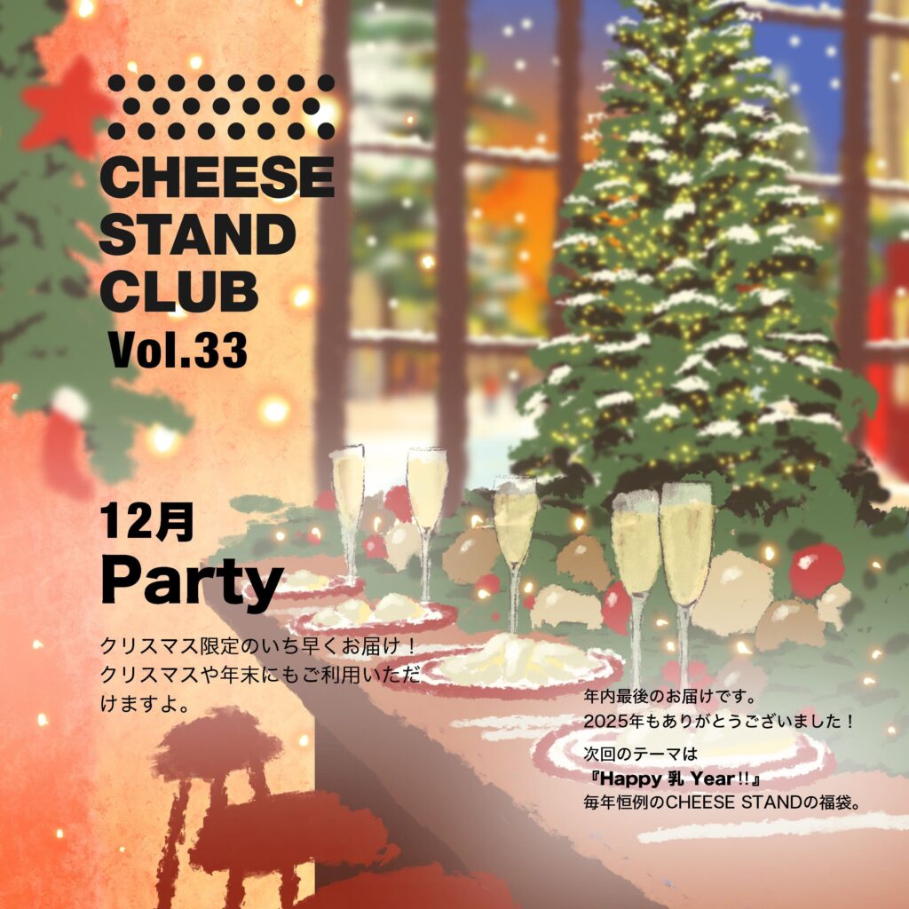 CHEESE STANDの新商品や季節限定のチーズをテーマを設けて毎月お届けする定期便「CHEESE STAND CLUB」の12月のお届け内容が決まりましたのでお知らせいたします。