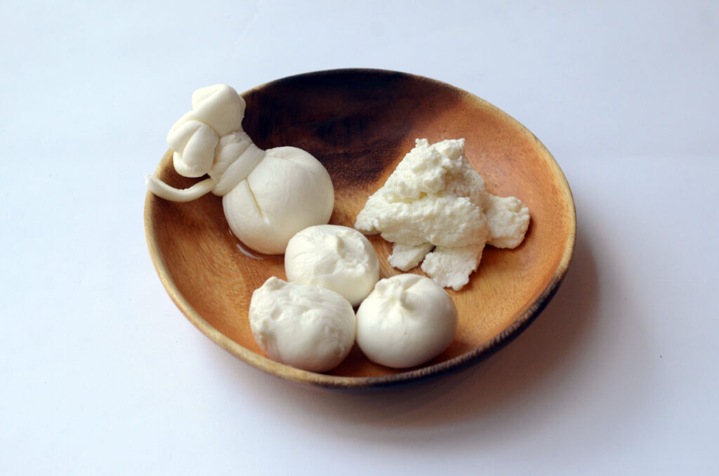 ホットミルクを飲んだ時のような、あのほんのり甘い風味。そして、ほわほわとした食感とてもやわらかく、とてもやさしいのが出来たてリコッタの特徴です。他のチーズに比べて脂肪分やカロリーが低いのも、リコッタのうれしいポイントです。