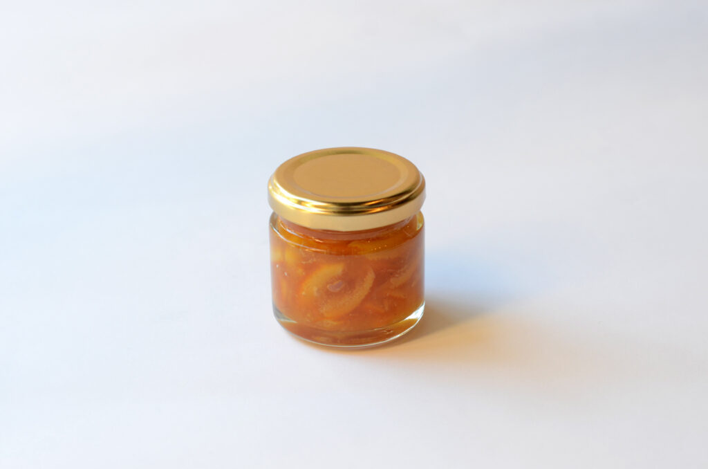 チーズに合わせることを前提に仕立てたチーズのためのオレンジマーマレードです。オレンジの果実味に、ジンジャー、カルダモン、クローブ、シナモンを控えめに重ね、チーズのミルク感を消さずに、後味だけを引き締めます。