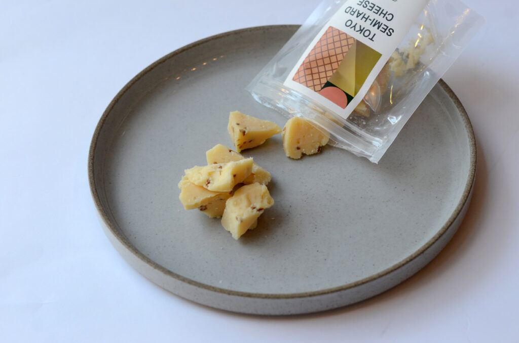 トロトロになった「東京白カビチーズ アフィネ」は、熟成によるミルキーとねっとり広がるうま味と塩味があります。そして「東京セミハードチーズ クミン2年熟成」クミン入り香りのアクセントになり、スパイス感がアクセントになっています。・塩味・クリーム感・スパイシーこれらを受け止め、また風味を広げてくれるような、蜜っぽさや優しくシットリとしたテクスチャーがあうと考え、フルーツ感・果実味があるワインを今月は選びました。