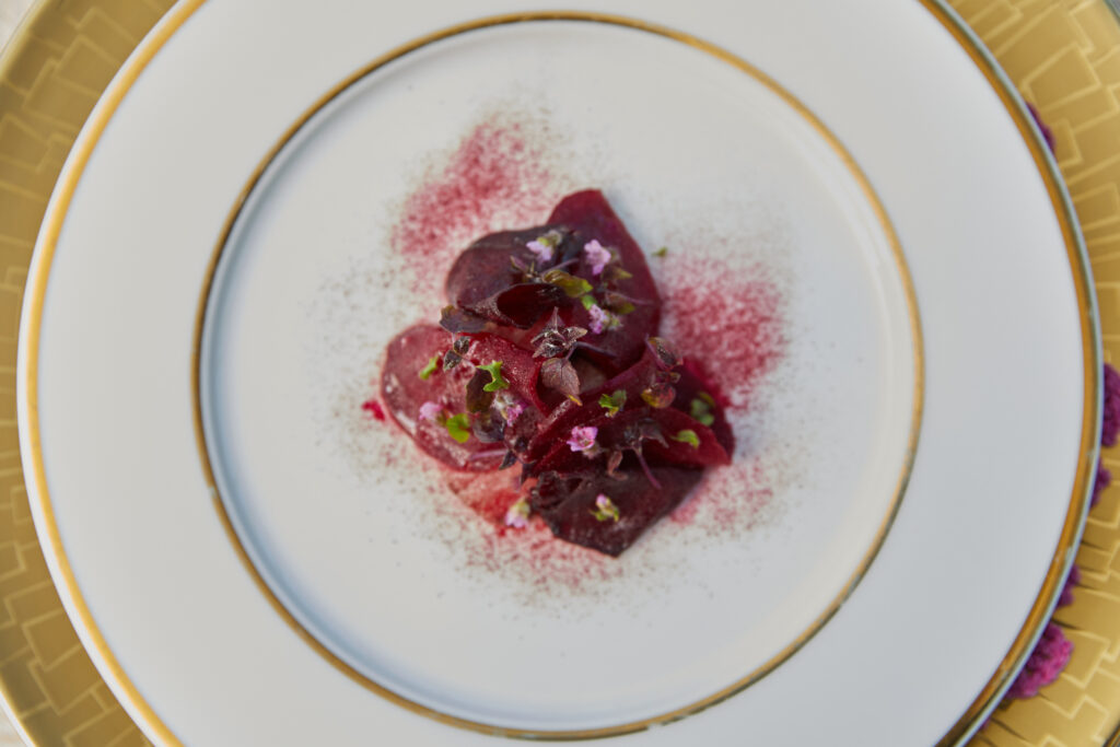 1. 和の調和が生む、清涼な一皿「ビーツとリコッタとお肉の前菜」