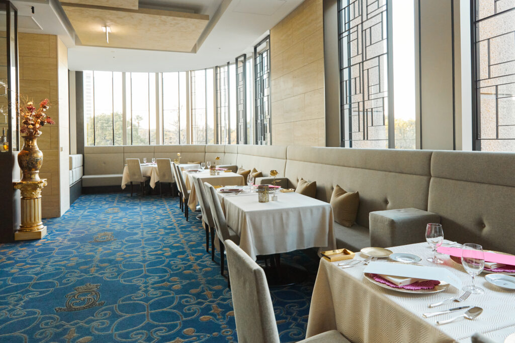 東京ミッドタウン日比谷の3階。皇居の緑を望むラグジュアリーな空間で、驚きに満ちたイタリア料理を提供する「SALONE TOKYO」。日比谷公園の広大な緑を見下ろすパークビューの店内は「都会の喧騒を忘れさせる開放感」